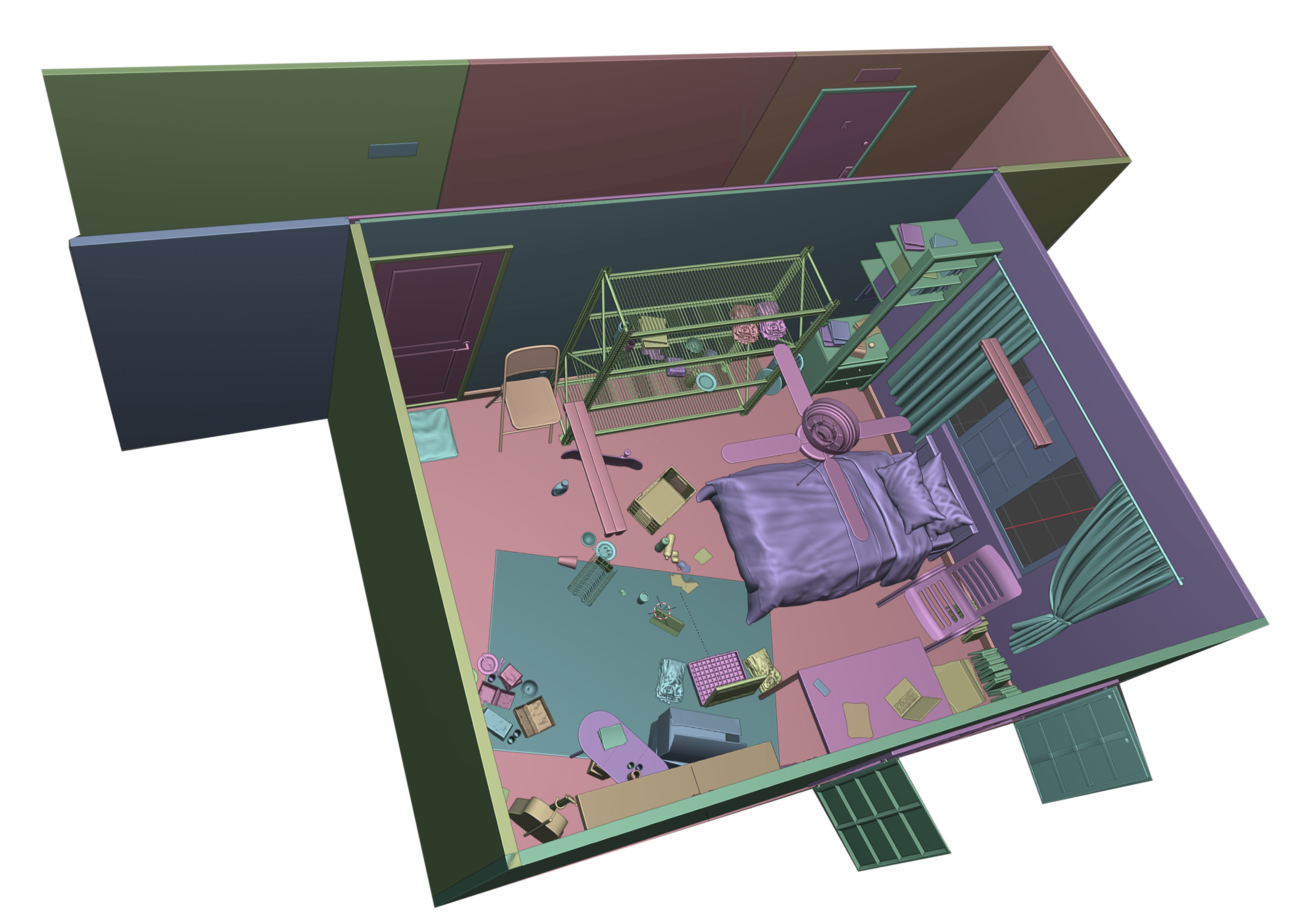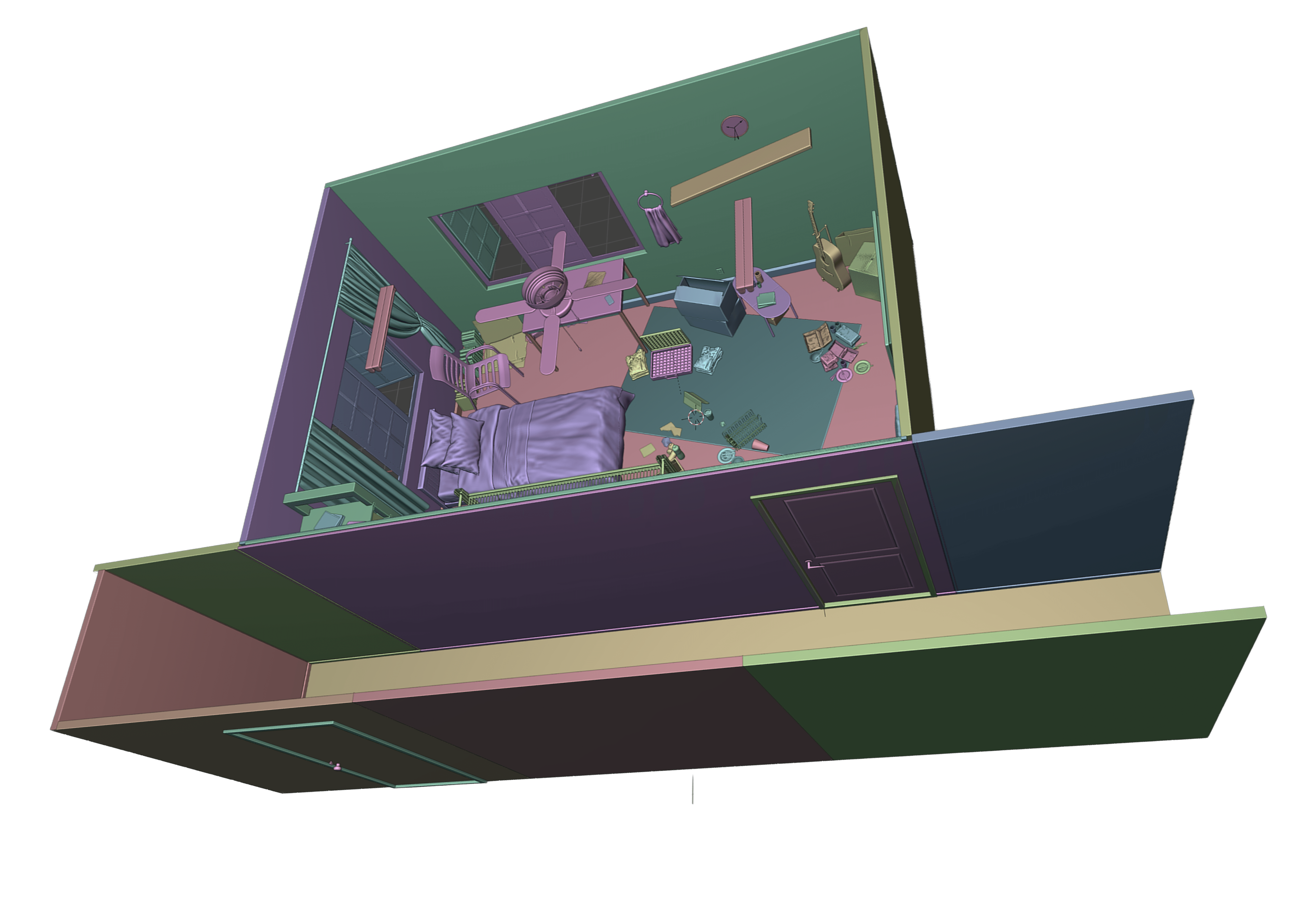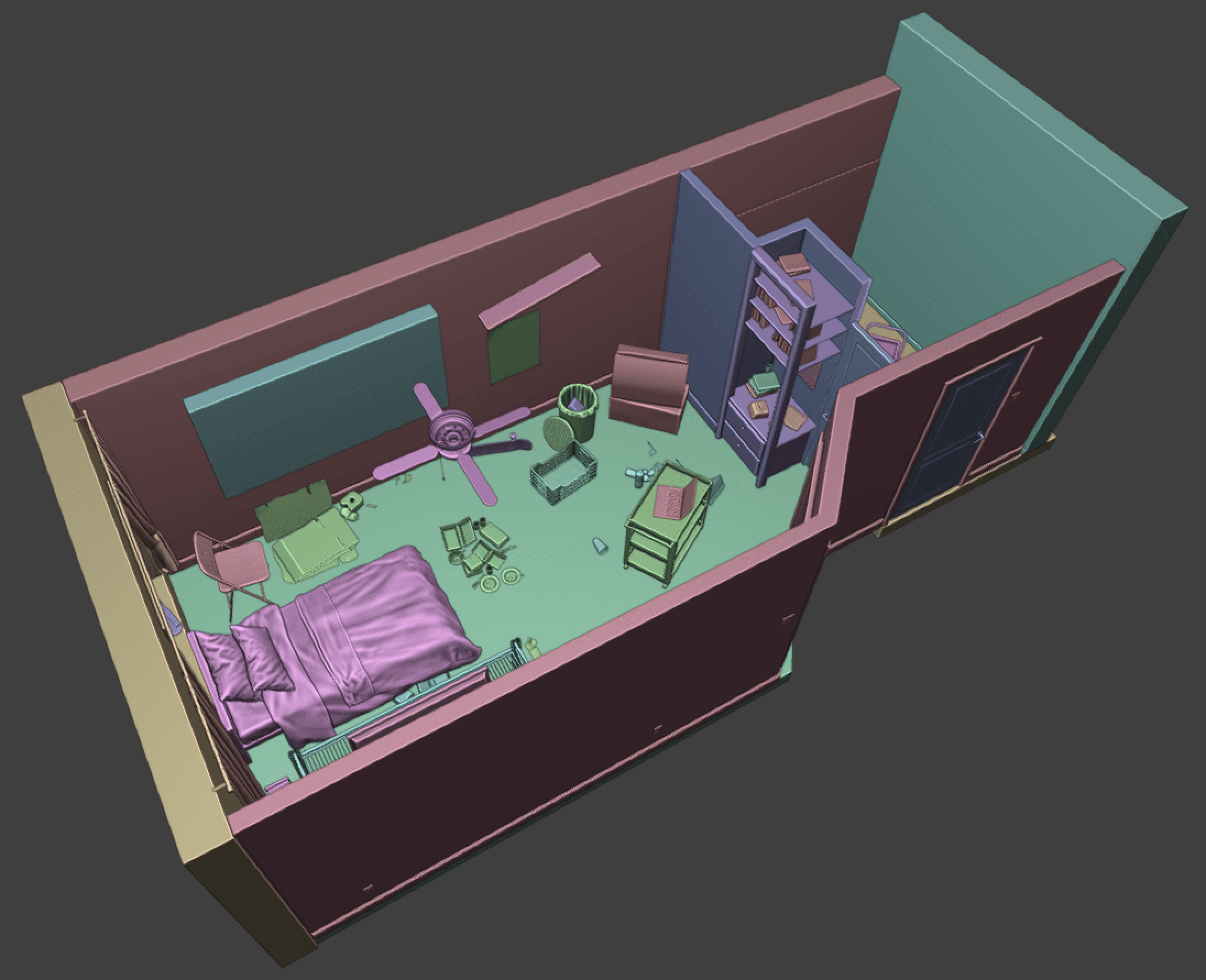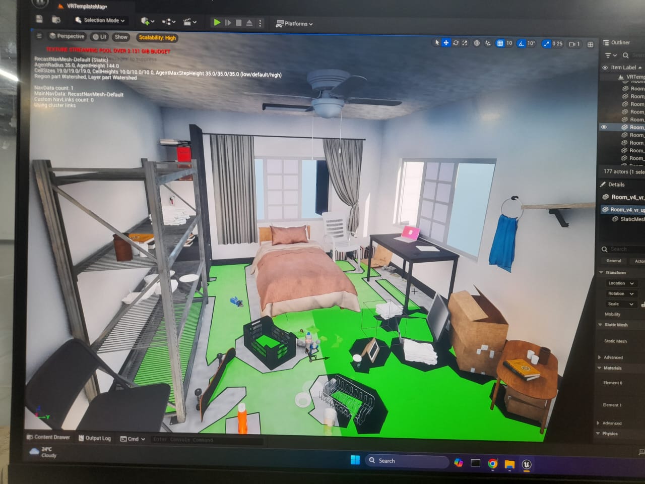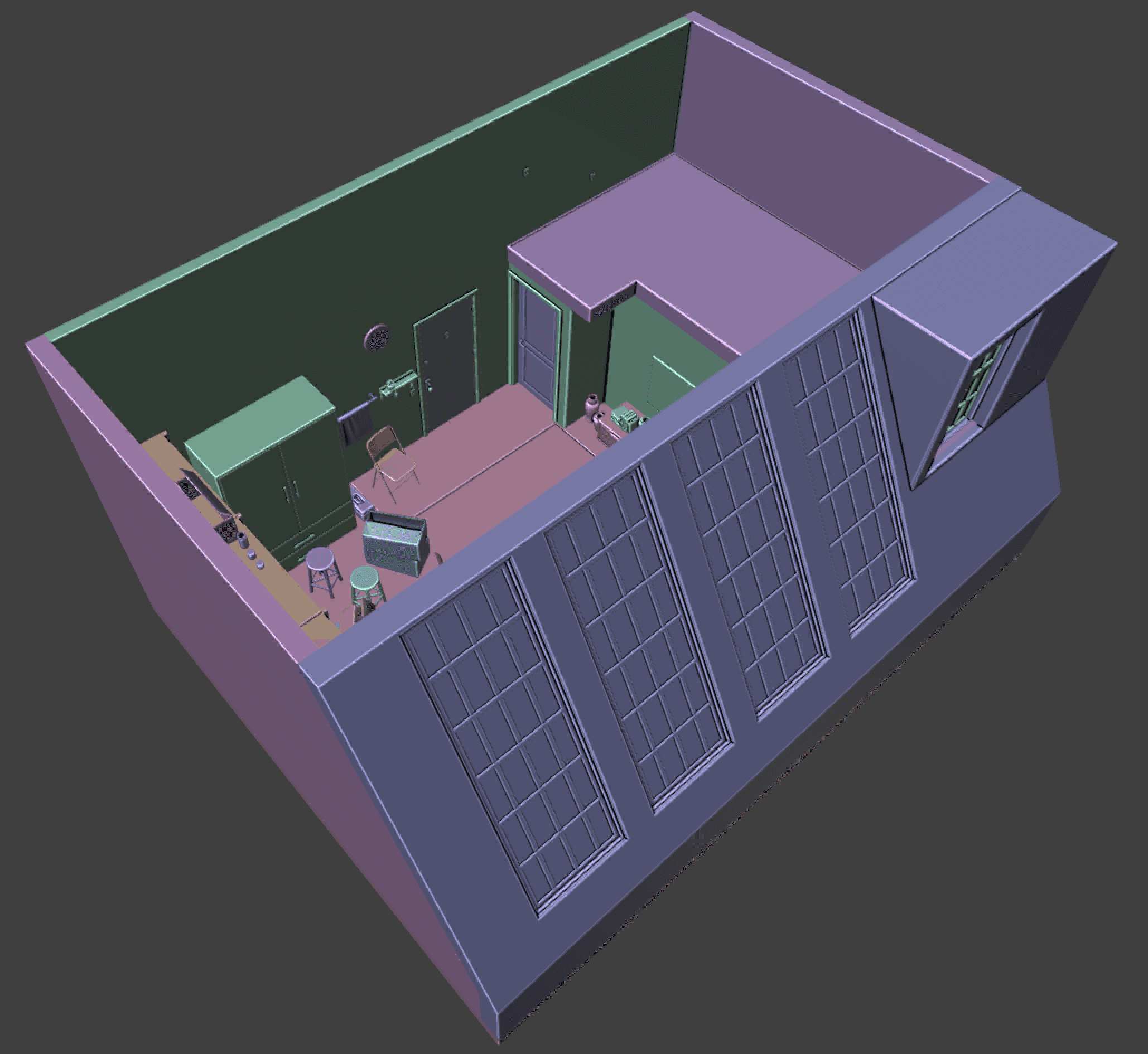 To fit this constraint, we decided to limit our virtual space to a single room flat meant for bachelors. we also wanted to include big enough windows for the users to look outside of. The decor and interior is very limited to essential items and a few
