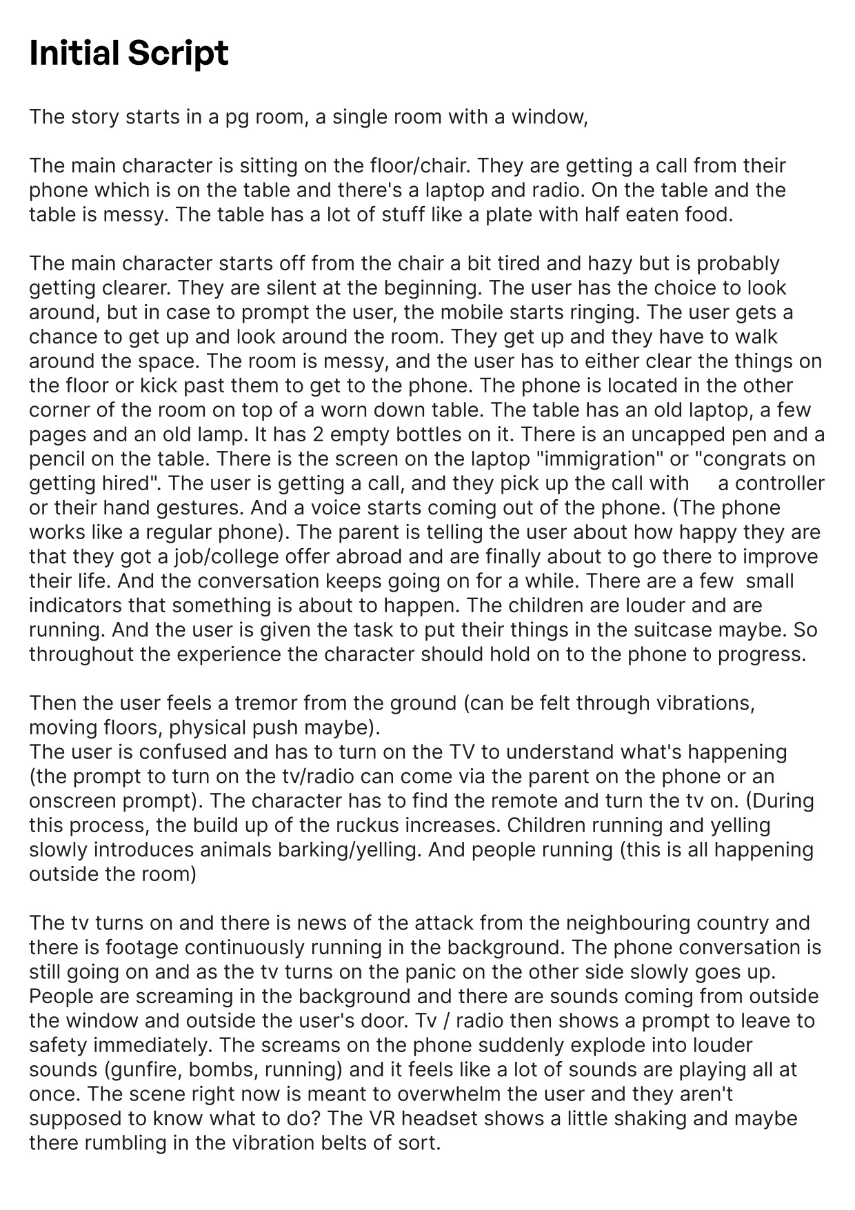 After the room size limitation which we had gotten for HMI Horizon which was 26 x 16 feet we decided to limit the experience to a room and narrate the story in such a way that it will still give them the same experience.