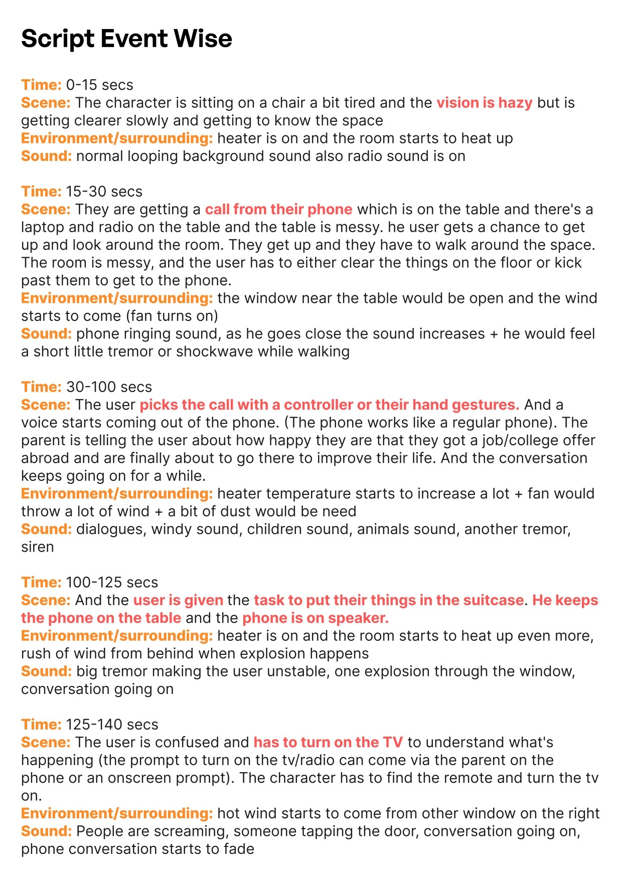 170-195 secs - User’s mom on call tells to leave to safety immediately to the user. The VR headset shows a little shaking