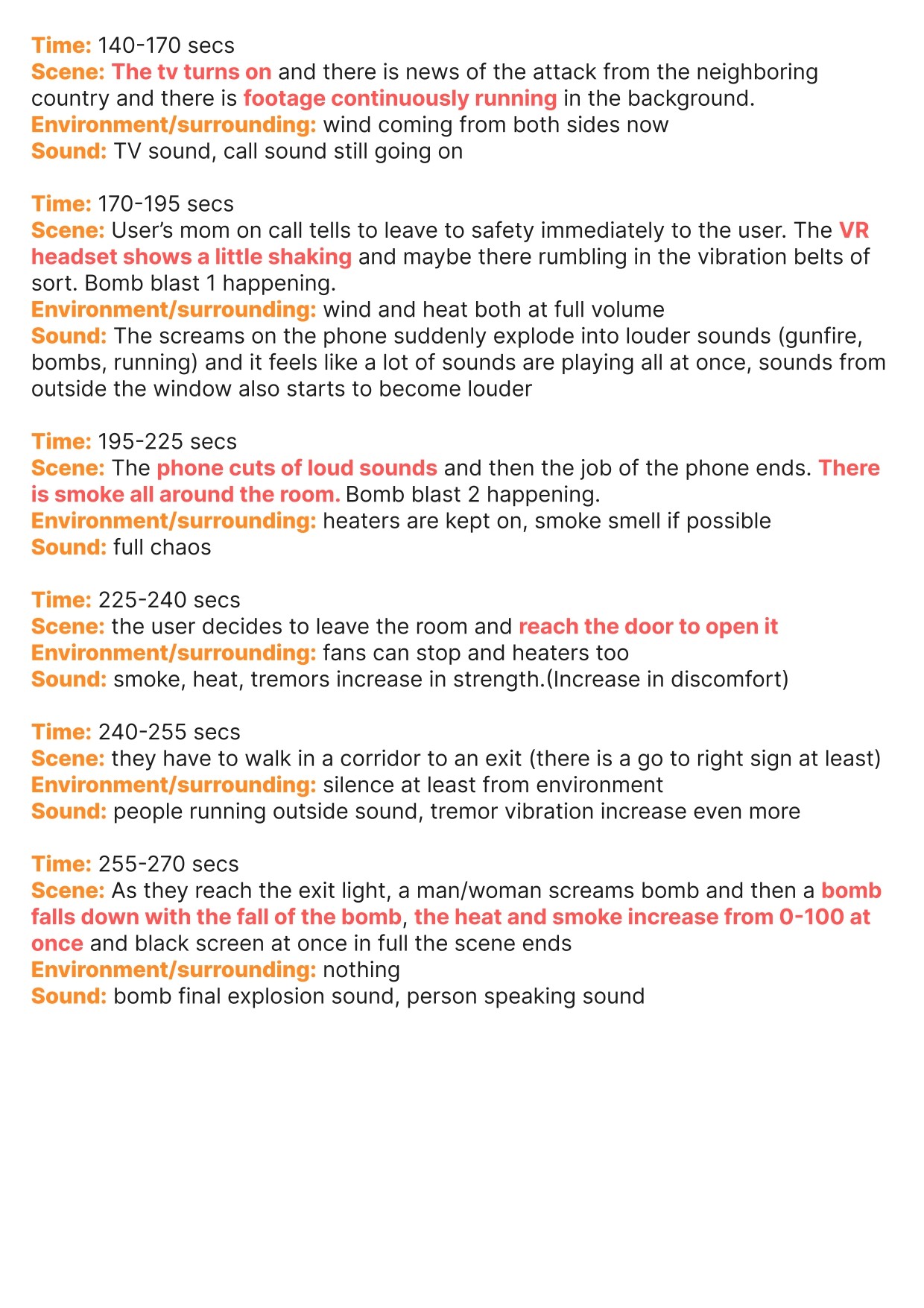 255-270 secs - As they reach the exit light, a bomb falls down with the fall of the bomb, the heat and smoke increase from 0-100 at once and black screen at once in full the scene ends.